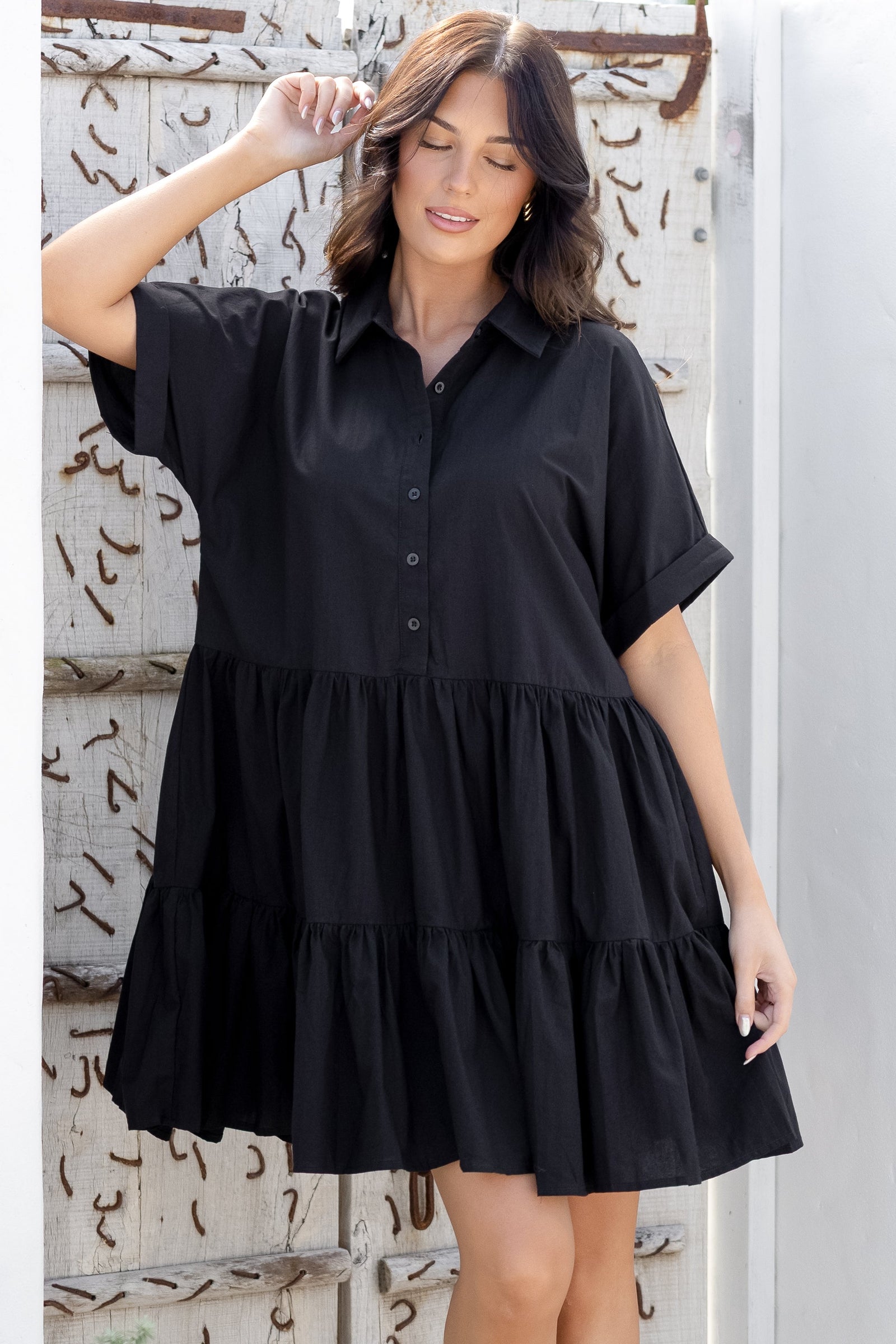Estelle Minikleid – Stufen-Hängerkleid mit Kragen in Schwarz